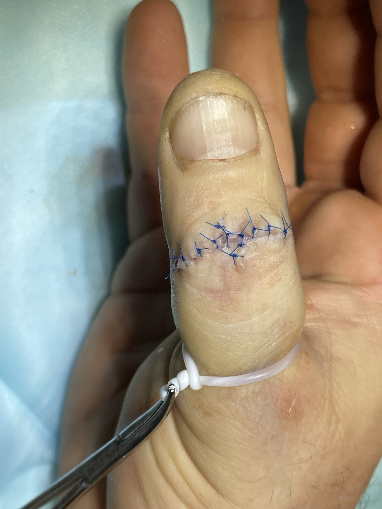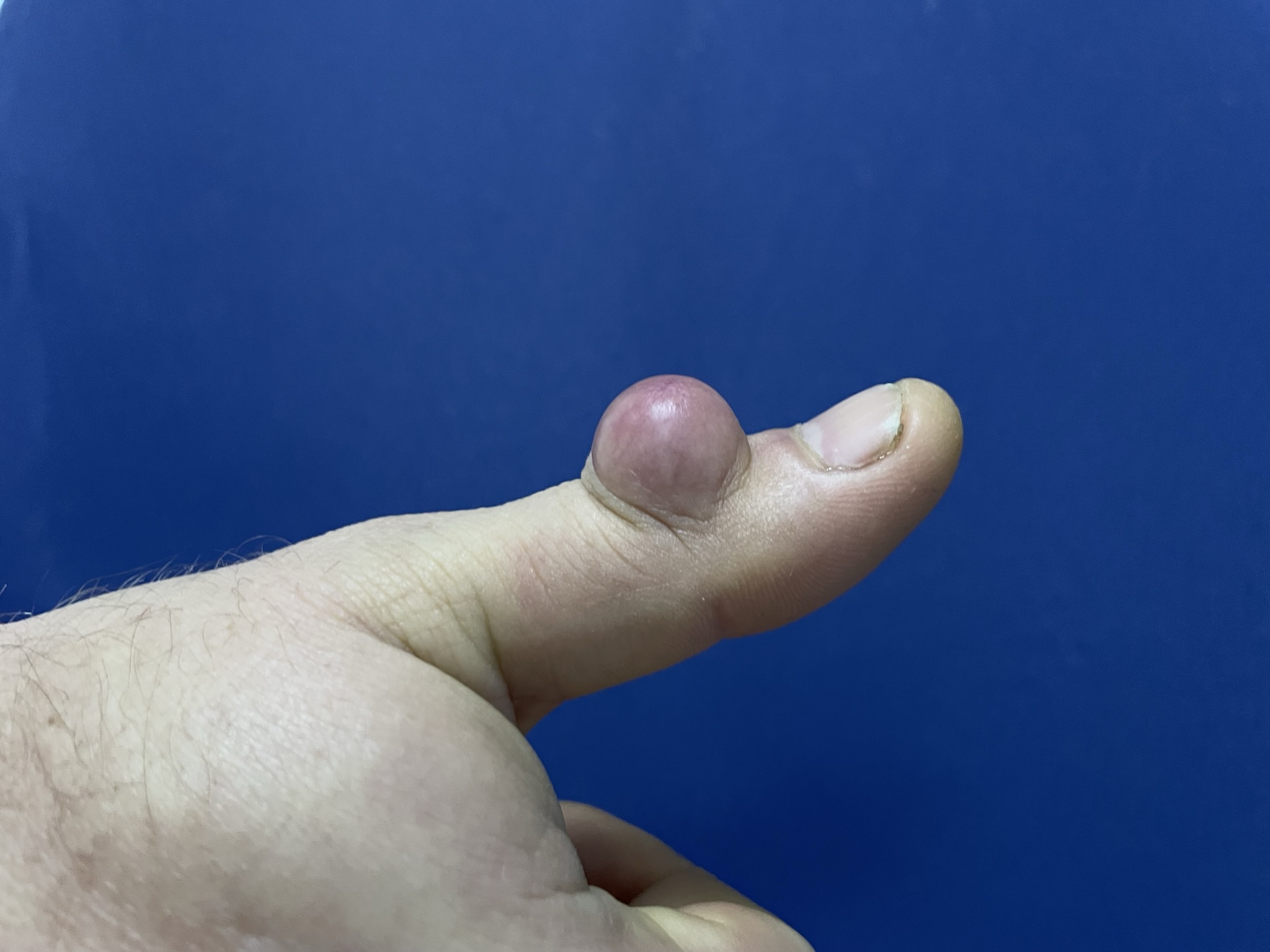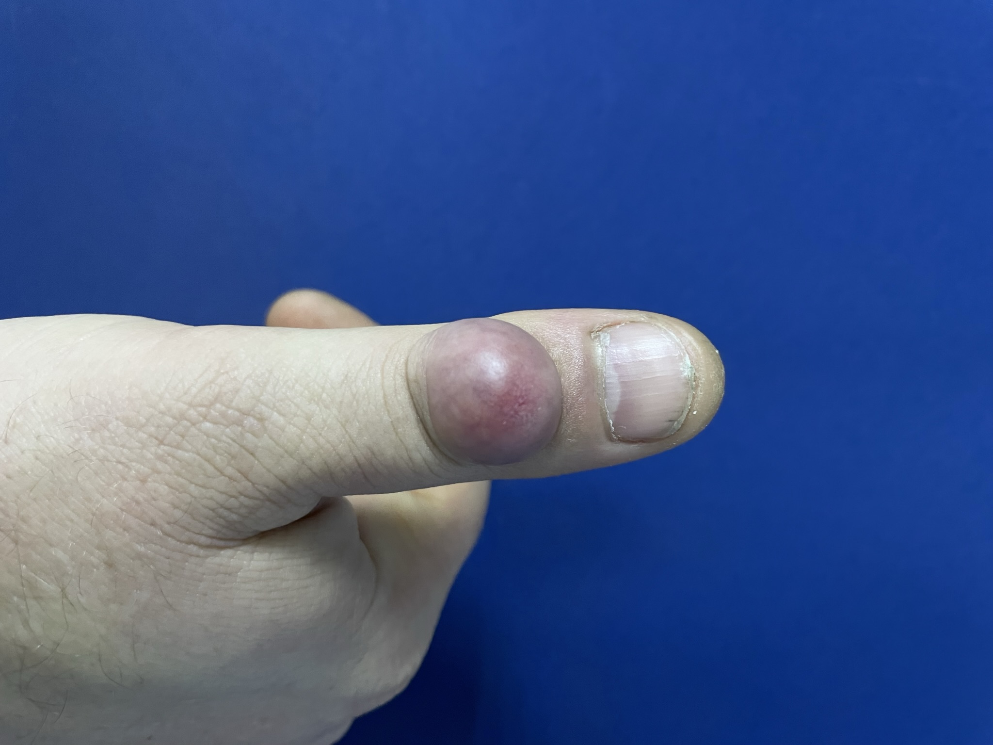 Гигрома дистального межфалангового сустава. Пациент отмечал боль при сгибании пальца, что ограничивало точную работу.