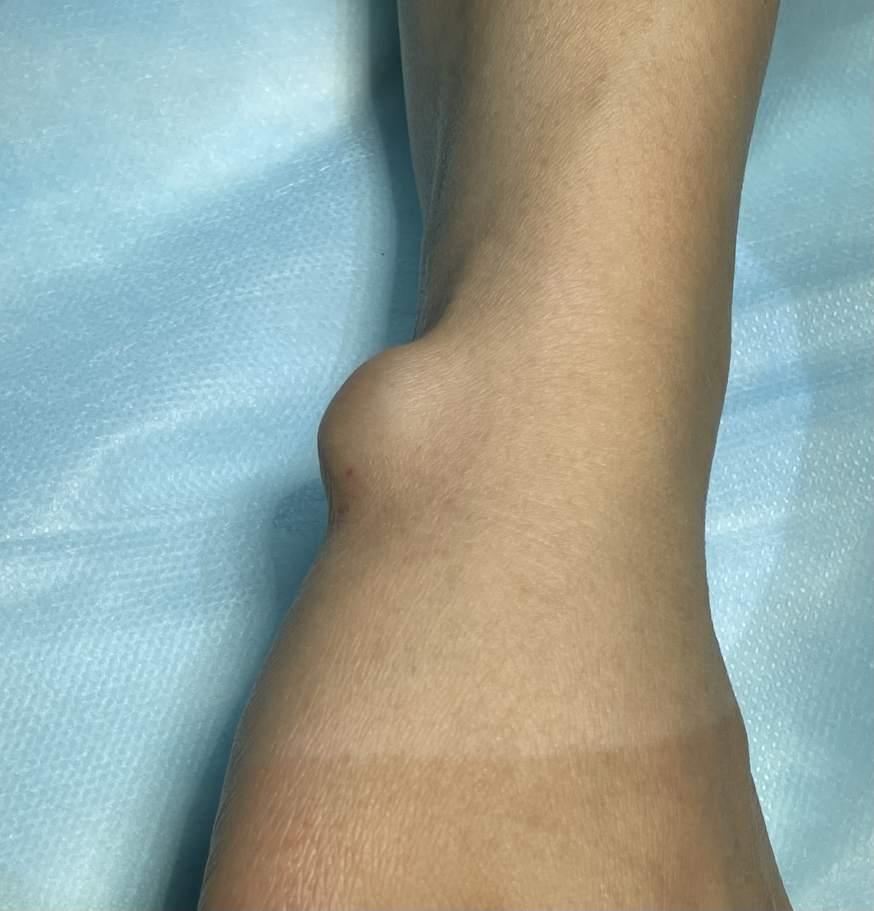 - Наличие новообразования под кожей в области кистевого сустава