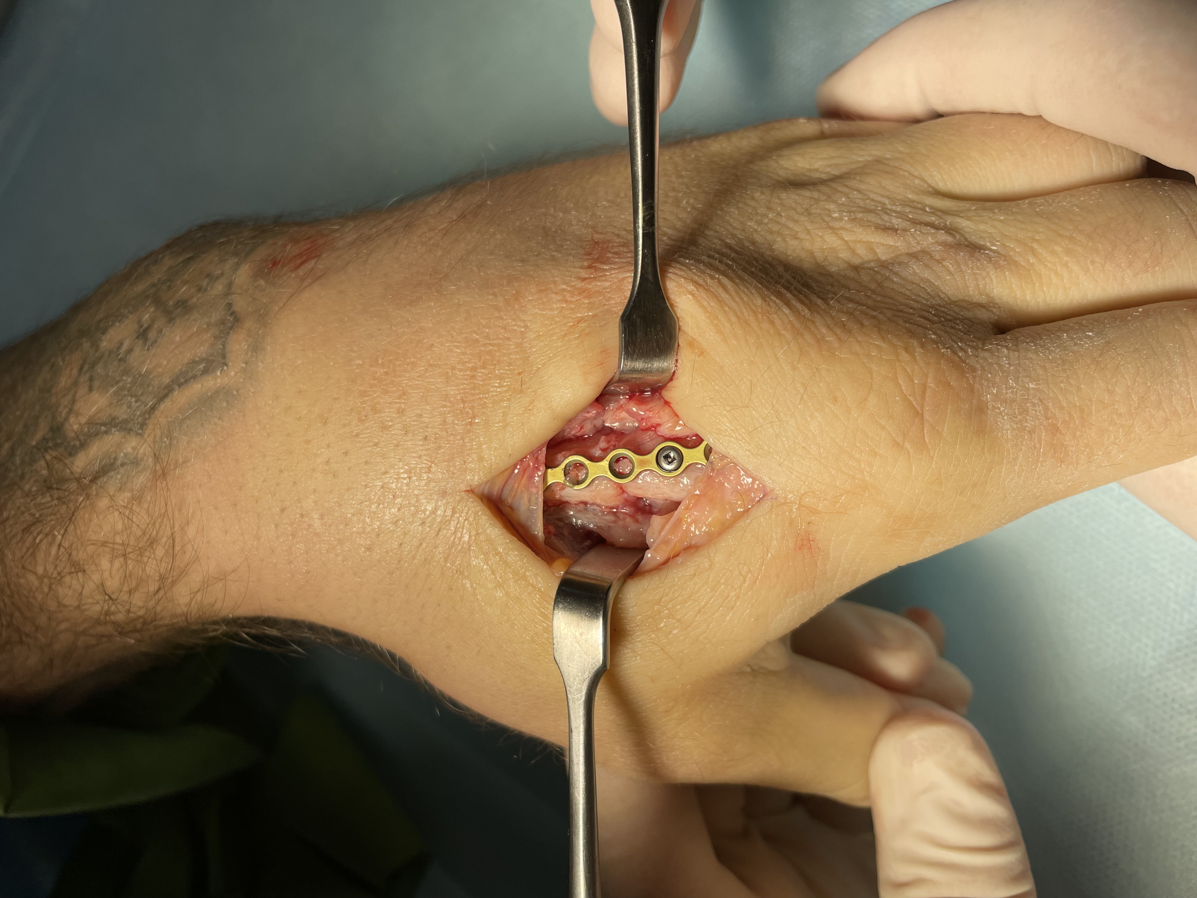Клинический случай: остеосинтез перелома 2 пястной кости — во время операции