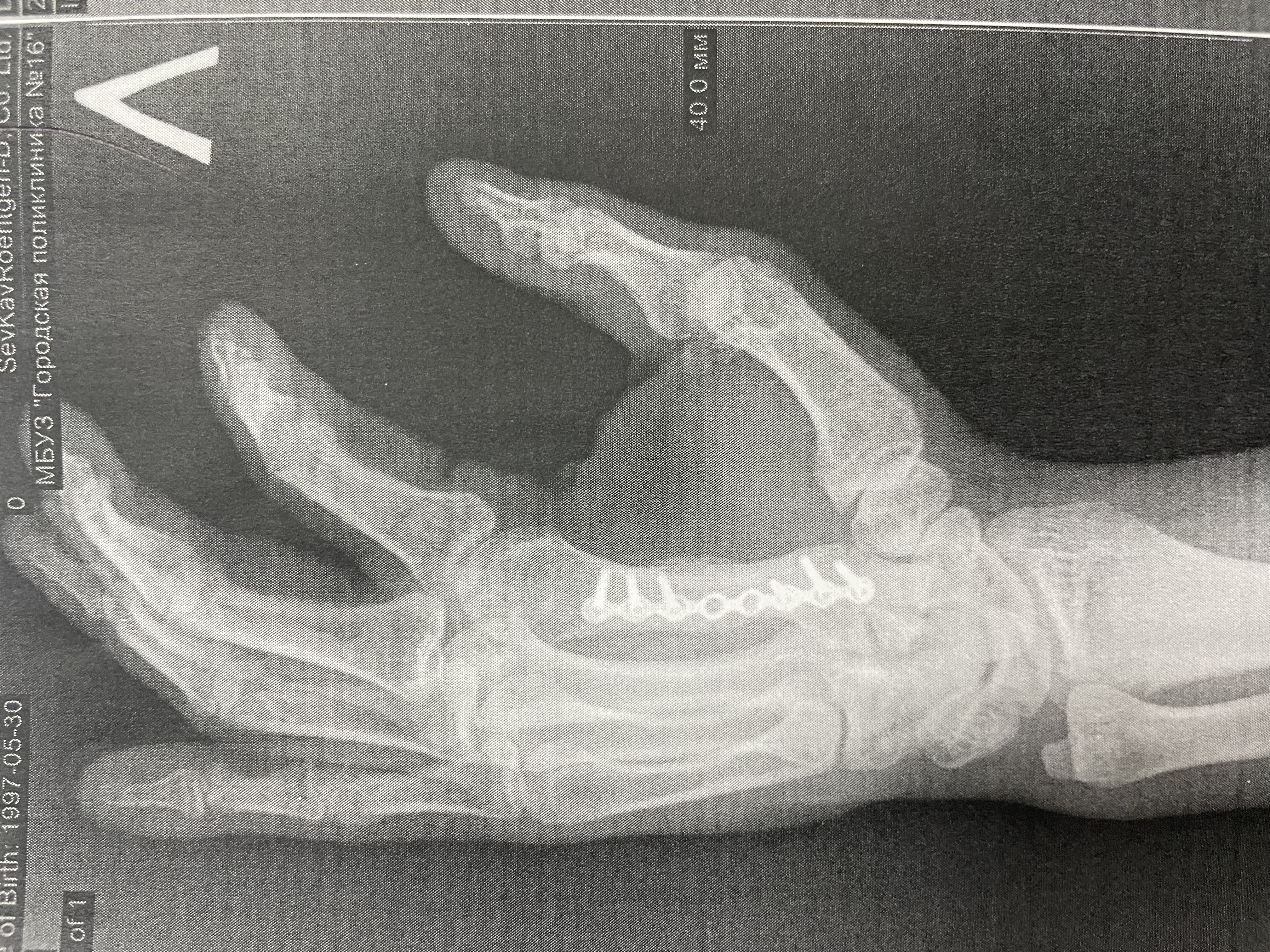 Клинический случай: остеосинтез перелома 2 пястной кости — лечение в ортезе